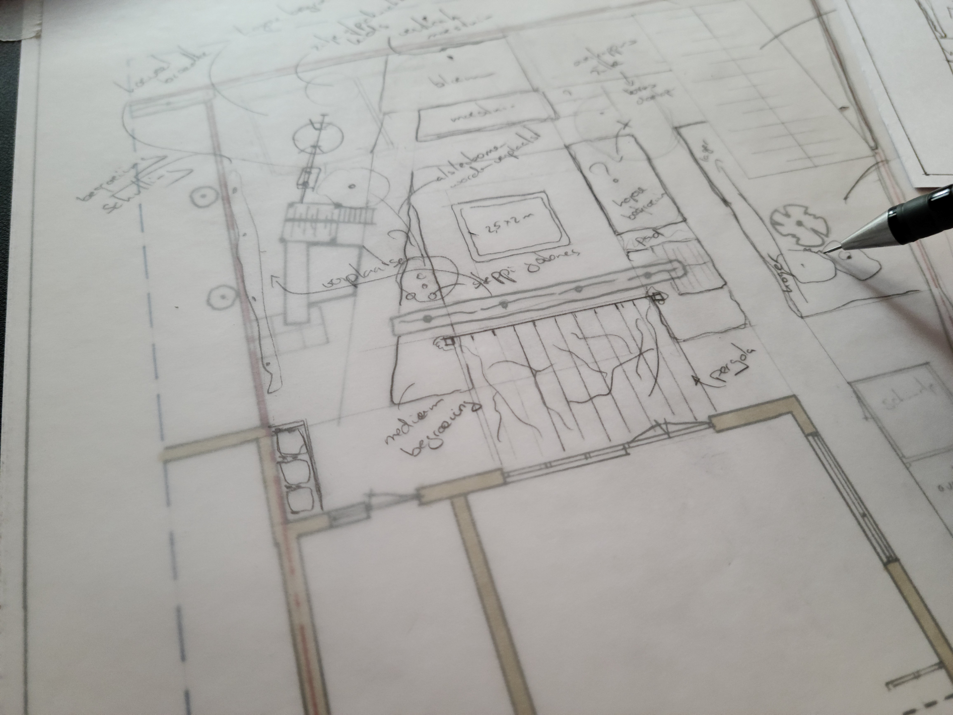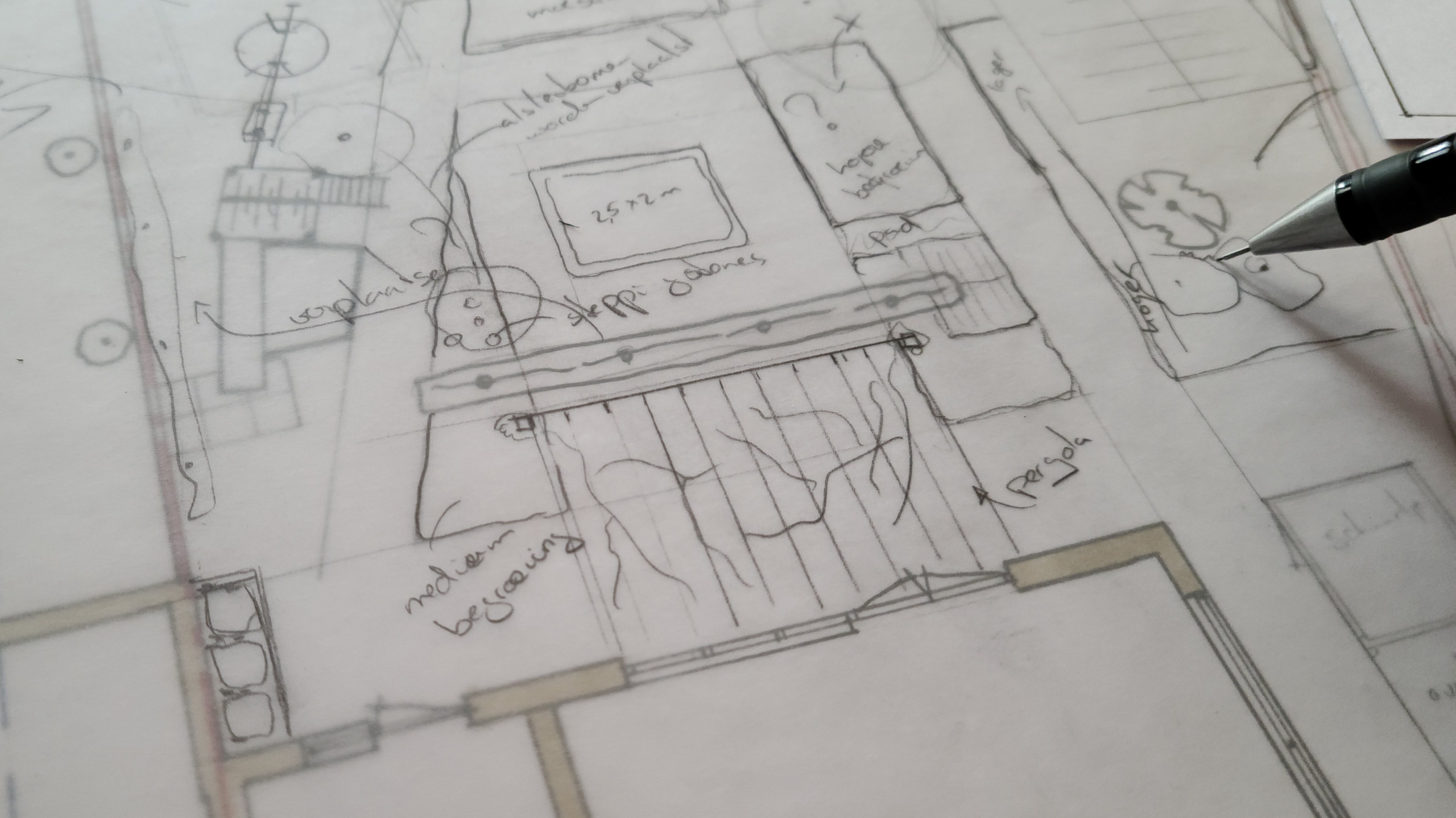 Werk je schetsen uit tot een eerste ontwerp en leer hoe je materialen en planten kiest.